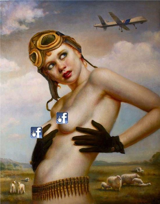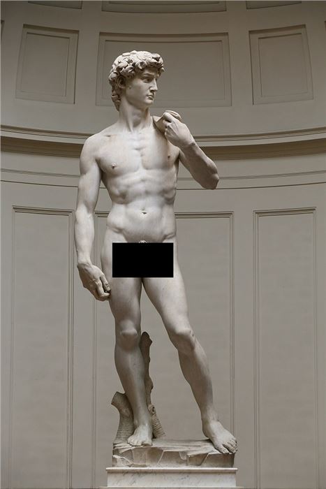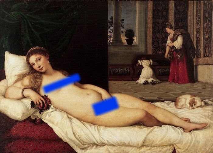 Chagrined art lovers who fell afoul of these anonymous denunciations resorted to altering images of works of art with photoshopped blurring, digital pastie band-aids, and fig leaves covering all the naughty bits. Rose Freymuth-Frazier’s paintings of ironic 21st-century third-wave feminist pinups were censored by her social media platforms, so she began using cleverly altered versions of Facebook’s blue “like” thumbs-up icons to cover nipples and crotches in pictures of her paintings (she turned them into little middle-fingered salutes). But even with an attitude, self-censorship inevitably radiated an invisible aura of digital shame. Facebook allowed members of private groups to share paintings and sculptures of nude subjects, and these became digital ghettos of art appreciation, shielded from public scrutiny by agnostic walls built from binary algorithms.