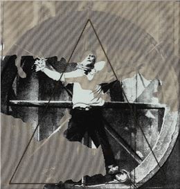 Collage of brass and textile on print