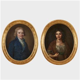 Ett par porträtt föreställande Johannes Hazelius (1758-1828) och hans maka Lovisa Dorotea Hazelius, född Keyser (1771-1850)