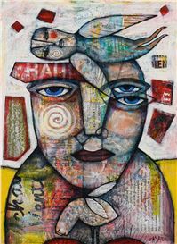 Mixed media and gluing on wood panel