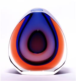 laminated glass (sommerso) with inner tunnel, densely shaped, cut